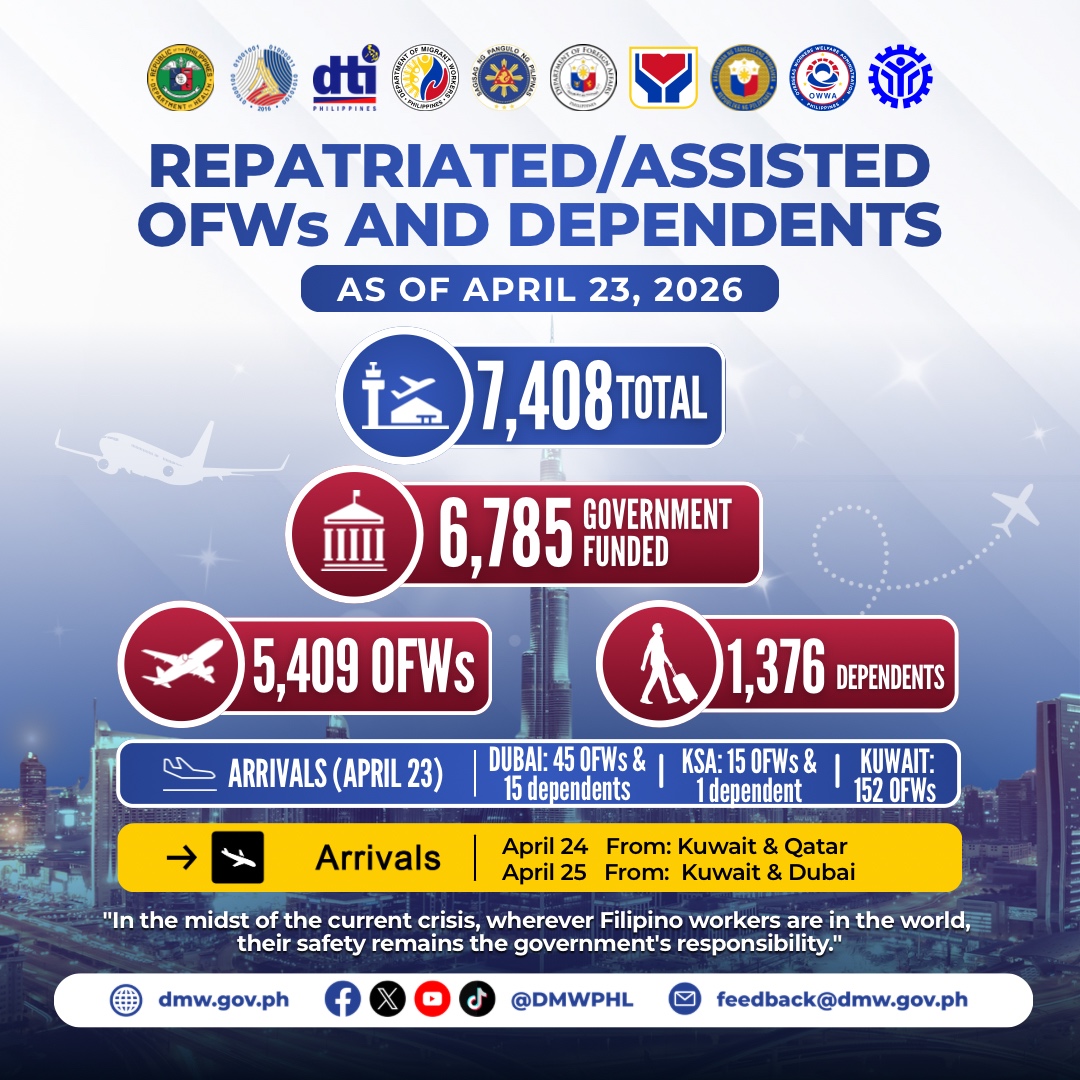 The ongoing unrest in the Middle East has prompted a massive repatriation effort, bringing thousands of overseas Filipinos safely back to the Philippines. Between March 5 and April 23, 2026, a total of 7,408 Overseas Filipino Workers (OFWs) and their family members successfully returned home to escape the escalating regional conflict.