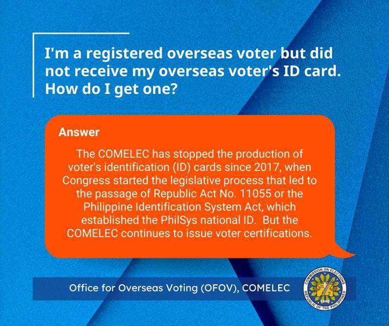 14. I’m a registered overseas voter but did not receive my overseas voter’s ID card. How do I get one?