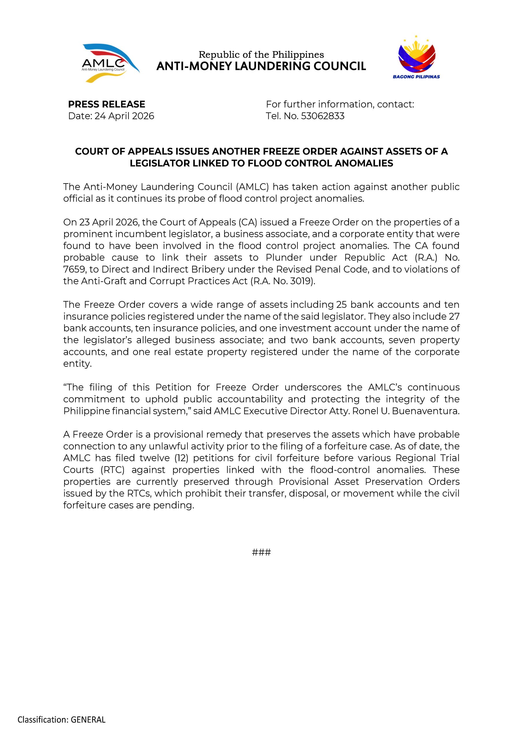 This case highlights the government’s commitment to addressing corruption and ensuring transparency in public projects. The AMLC’s proactive measures serve as a reminder that financial misconduct will not go unchecked. It also sends a strong message to public officials about the consequences of engaging in corrupt practices.